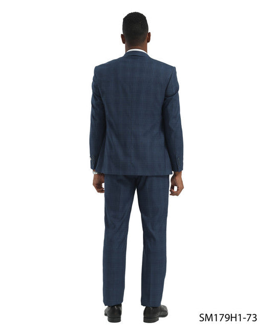 Blue Glen Plaid 3 Piece Peak Lapel Stacy Adams Men's Hybrid Suit