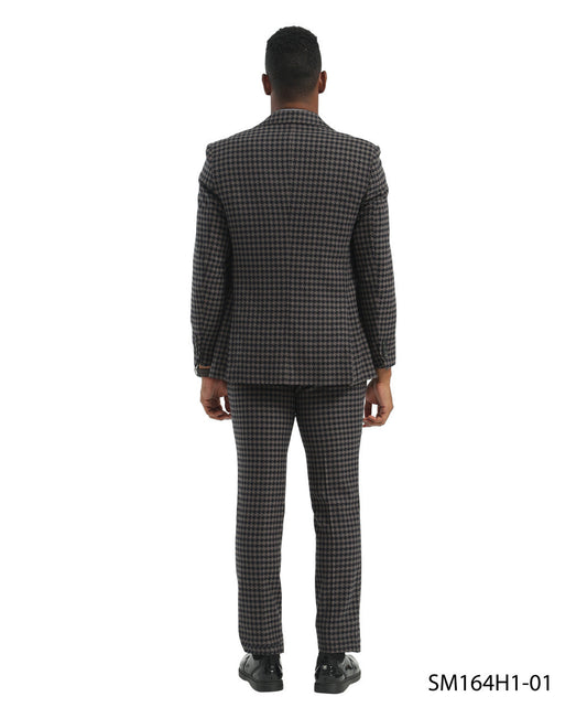 Brown Micro-Houndstooth 3 Piece Notch Lapel Stacy Adams Men's Hybrid Suit