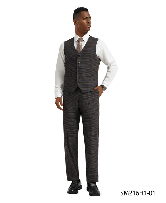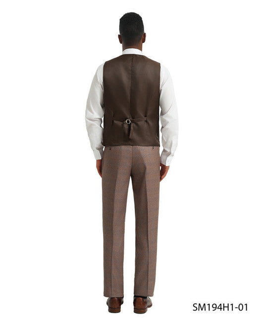 Brown Glen Plaid Notch Lapel 3 Piece Stacy Adams Men' Suit