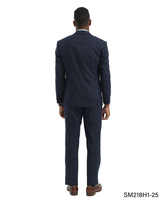 Navy Plaid 3 Piece Peak Lapel Stacy Adams Men's Hybrid Suit