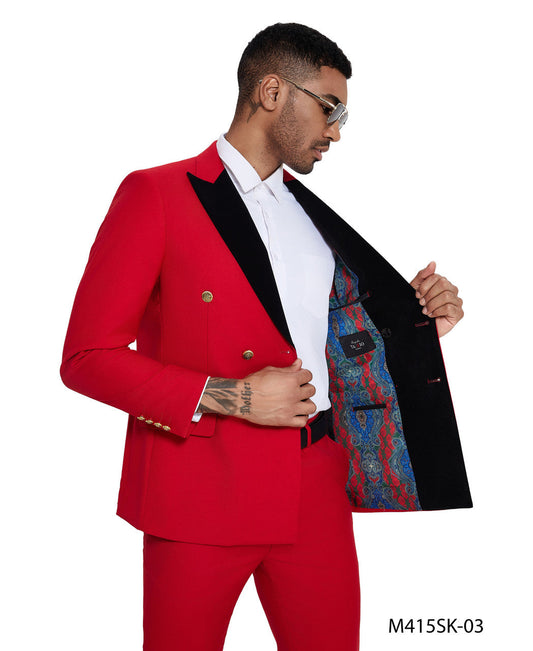 Red Double Breasted Velvet Peak Lapel 2 Piece Gold Buttons Skinny Fit Tazzio Men's SuitRegular price $179.99 USDRegular priceUnit price / per-