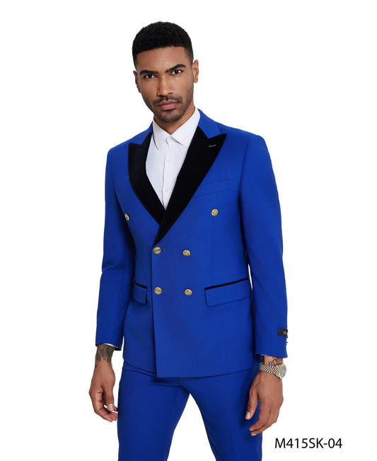 Royal Double Breasted Velvet Peak Lapel 2 Piece Gold Buttons Skinny Fit Tazzio Men's SuitRegular price $179.99 USDRegular priceUnit price / per-
