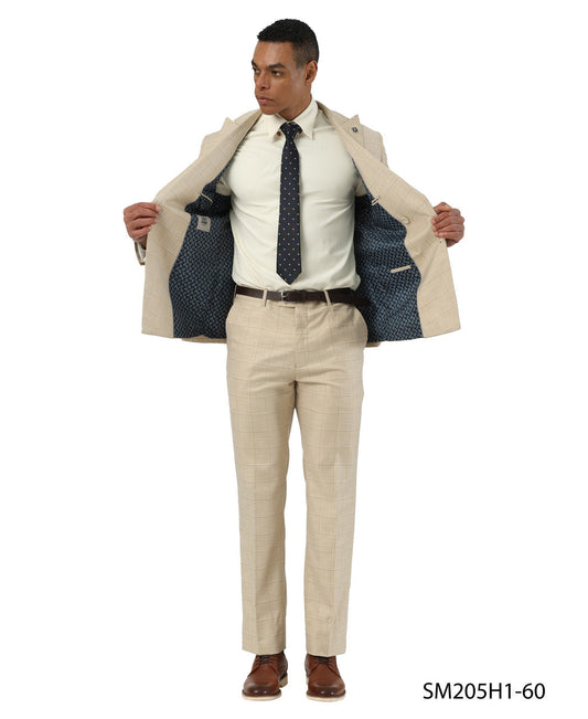 Beige Windowpane Peak Lapel Double Breasted 2 Piece Stacy Adams Men' SuitRegular price $219.99 USDRegular priceUnit price / per-