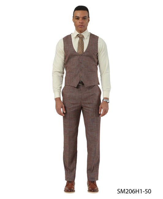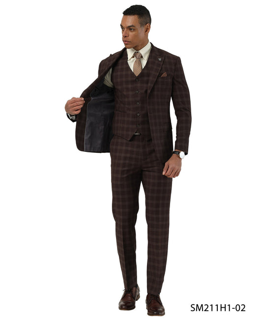Walnut Windowpane Double Breasted Vest Peak Lapel 3 Piece Skinny Fit Tazzio Men's SuitRegular price $174.99 USDRegular priceUnit price / per-