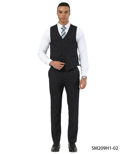 Black Windowpane Double Breasted Vest Peak Lapel 3 Piece Skinny Fit Tazzio Men's SuitRegular price $174.99 USDRegular priceUnit price / per-