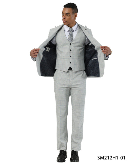 Light Gray Windowpane Notch Lapel 3 Piece Stacy Adams Men' SuitVendor:Stacy AdamsRegular price $219.99 USDRegular priceUnit price / per-