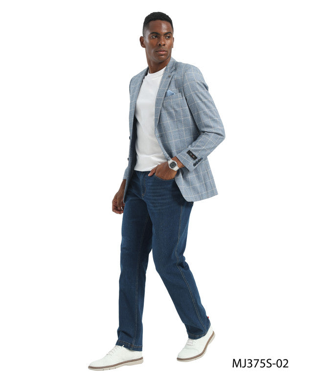 Indigo Windowpane Notch Lapel Slim Fit Tazzio Men's Jacket