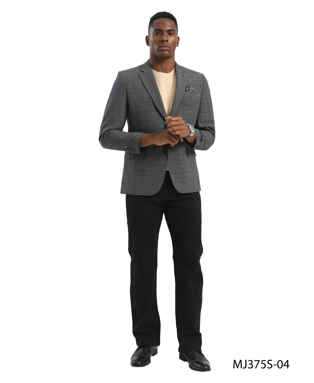 Charcoal Windowpane Notch Lapel Slim Fit Tazzio Men's Jacket