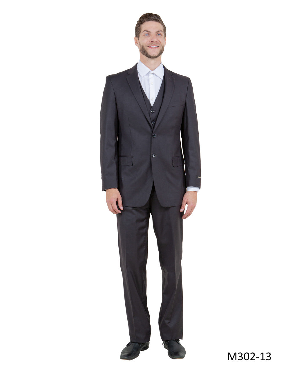 Solid Dark Grey Notch Lapel 3 Piece Modern Fit Demantie Men's Suit