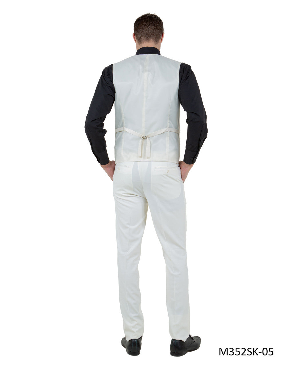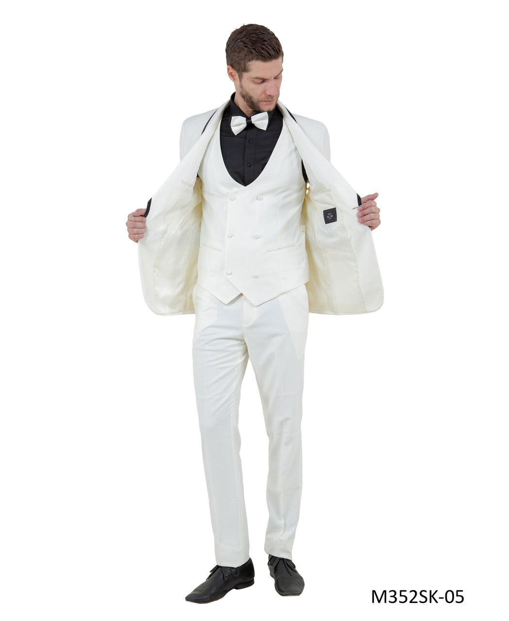 Offwhite/Black Double Breasted Vest Shawl Lapel 3 Piece Skinny Fit Tazzio Men's Suit With Bowtie