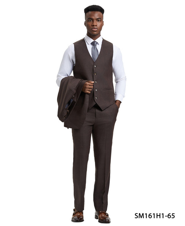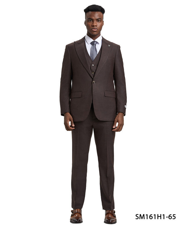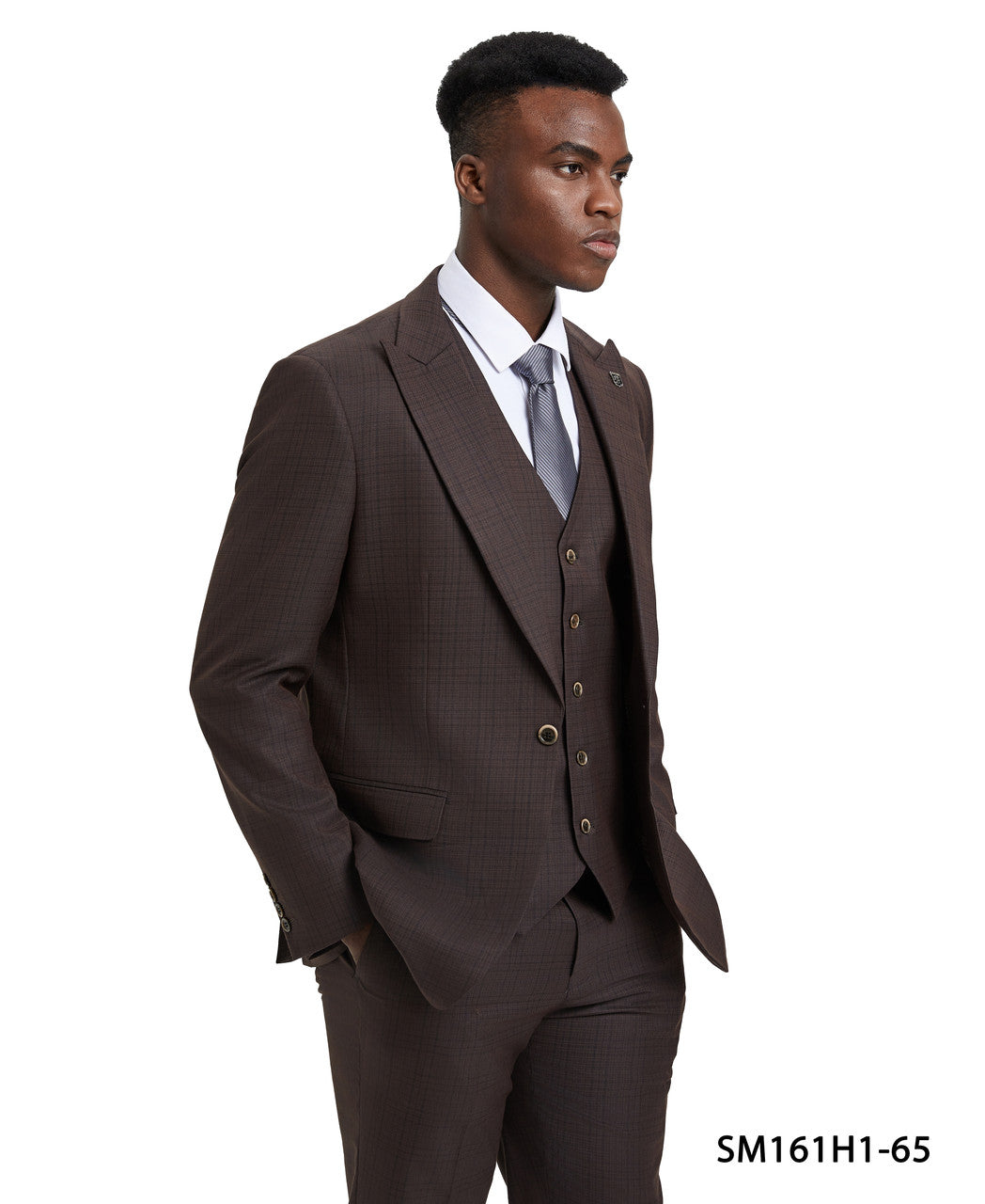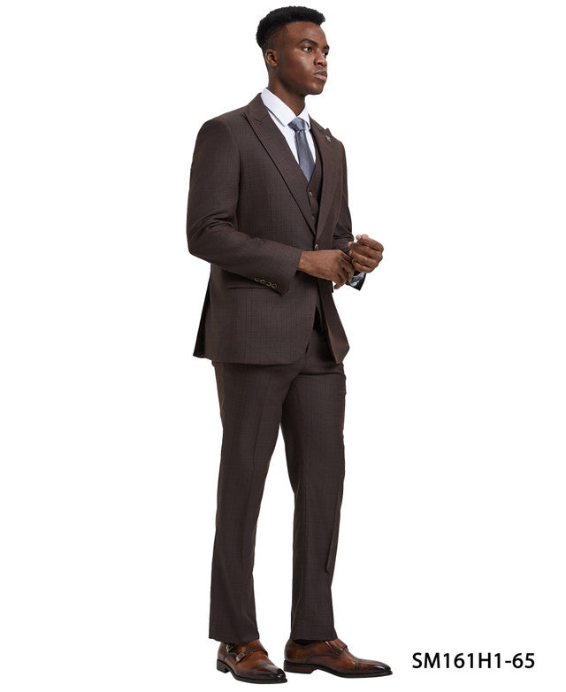 Dark Brown Plaid 3 Piece Peak Lapel Stacy Adams Men's Hybrid Suit