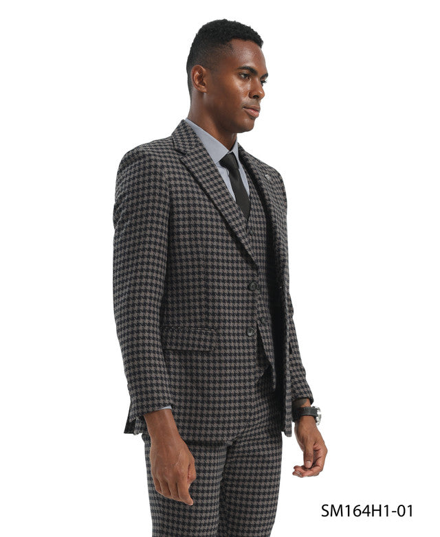 Grey Houndstooth 3 Piece Notch Lapel Stacy Adams Men's Hybrid Suit