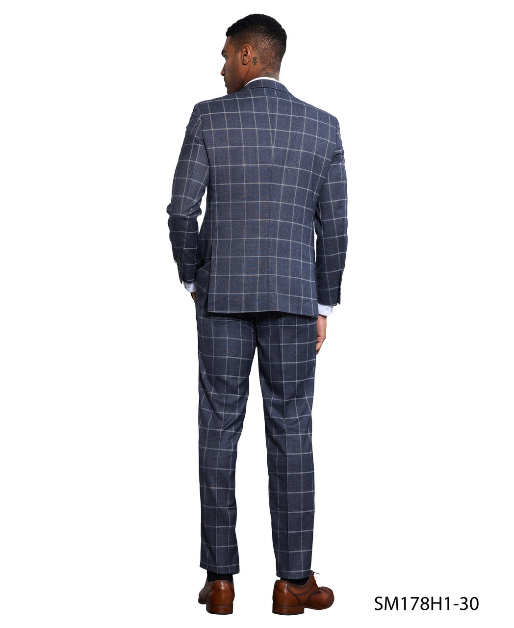Charcoal Windowpane 3 Piece Peak Lapel Stacy Adams Men's Hybrid Suit