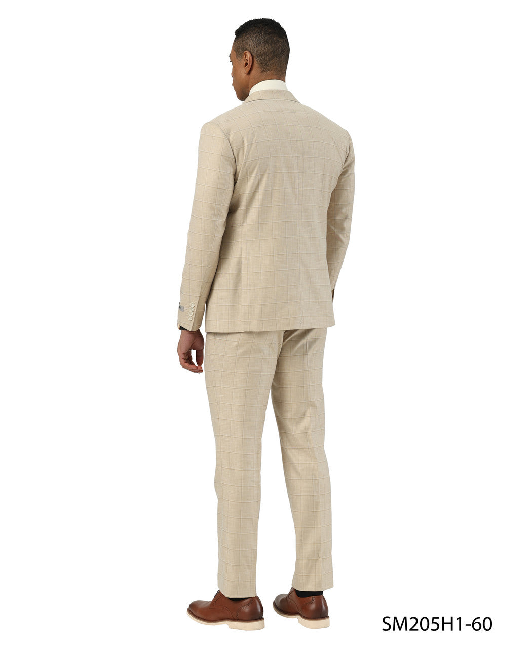 Beige Windowpane Peak Lapel Double Breasted 2 Piece Stacy Adams Men' Suit