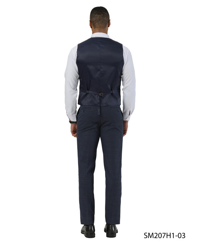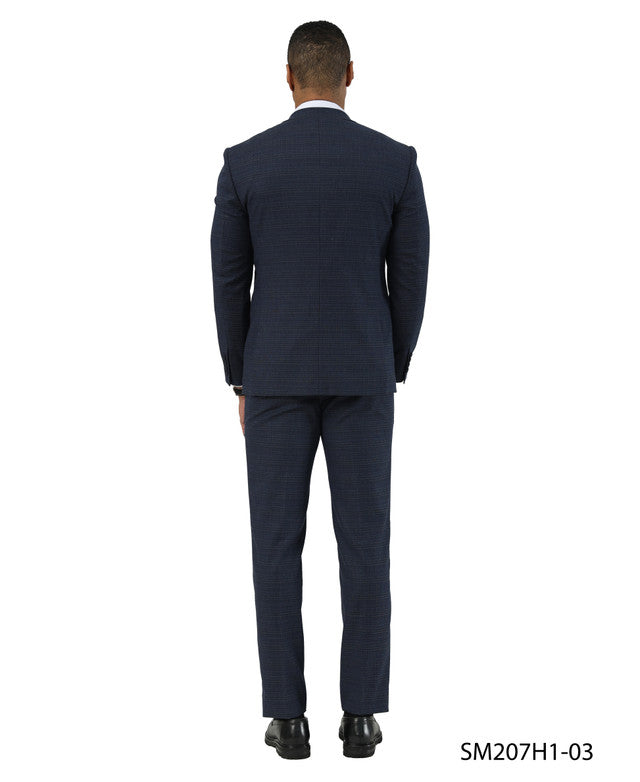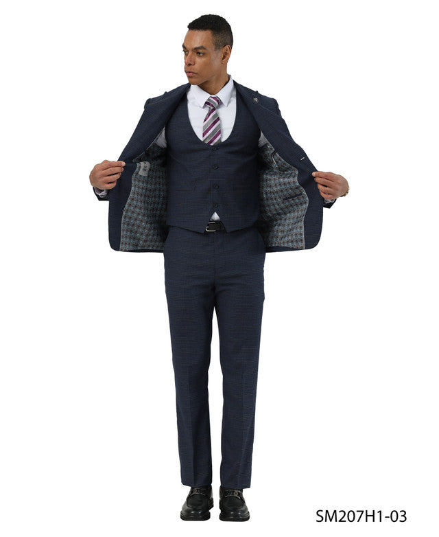 Navy Textured Glen Check Peak Lapel 3 Piece Stacy Adams Men' Suit