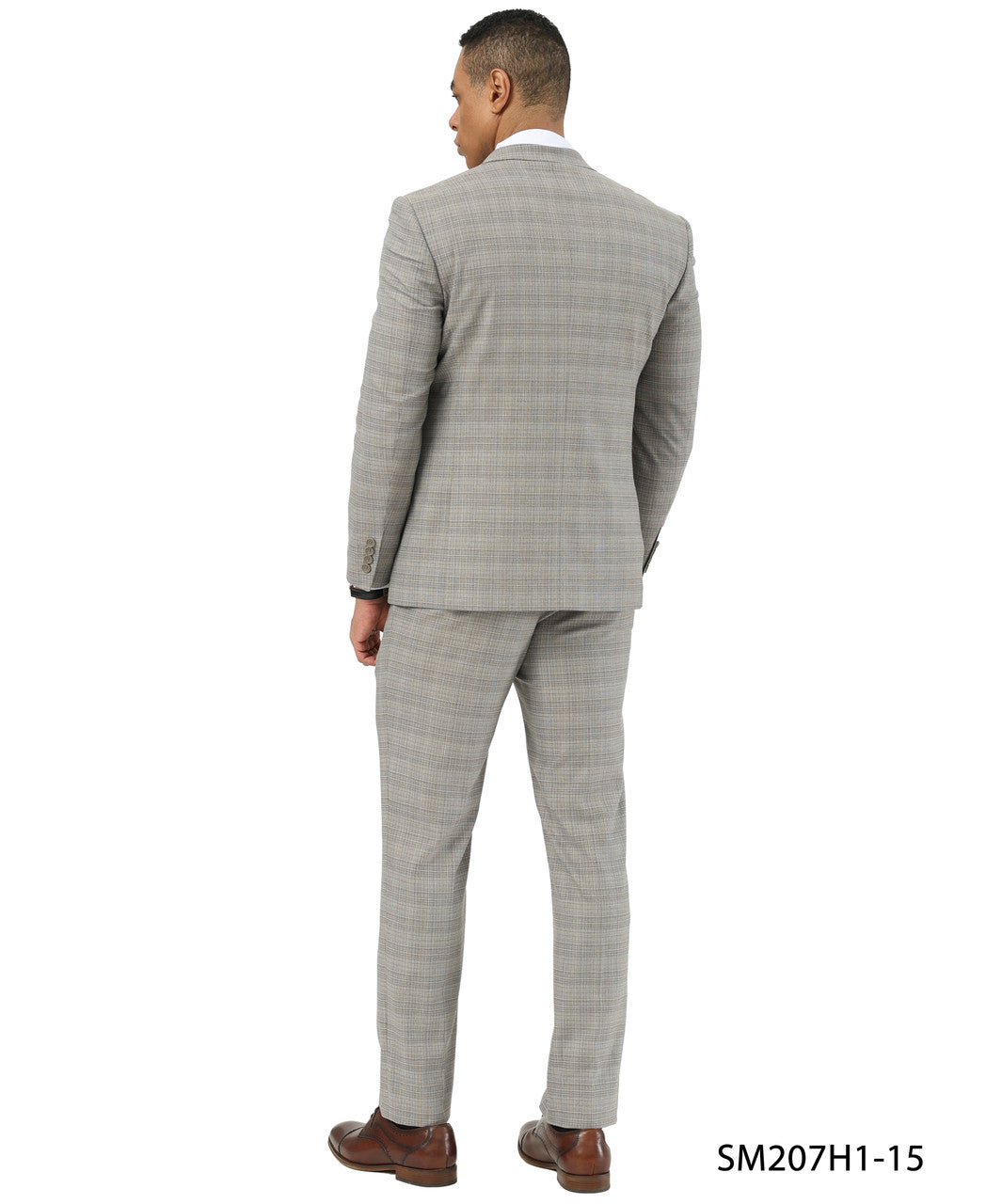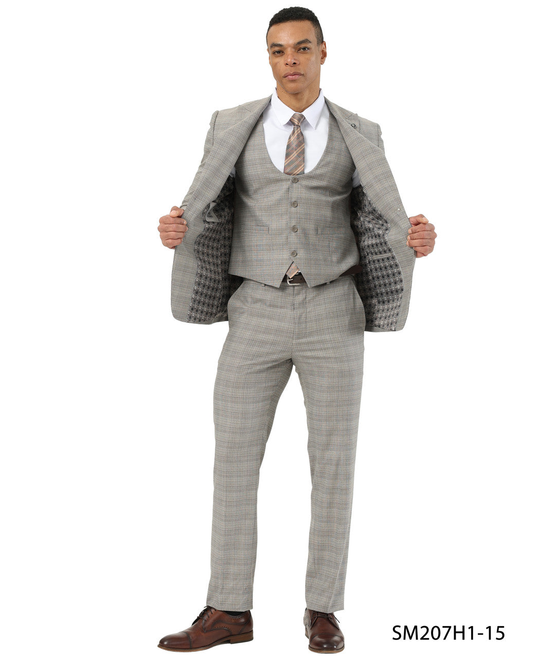 Khaki Textured Glen Check Peak Lapel 3 Piece Stacy Adams Men' Suit