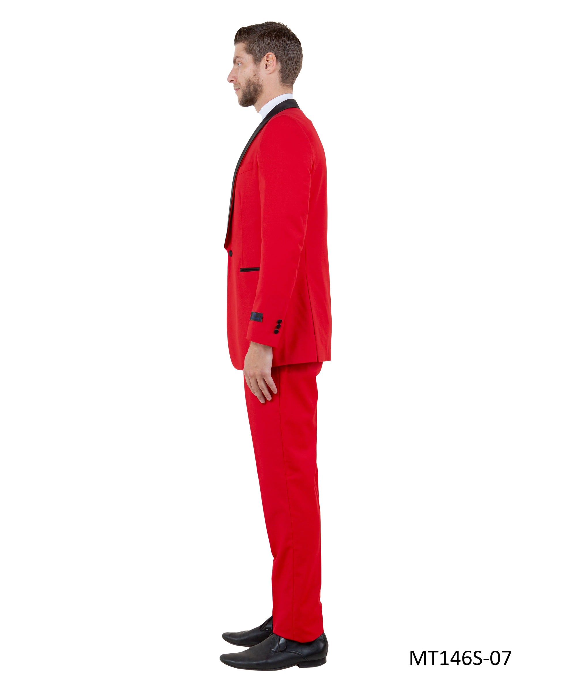 Red on Black Satin Shawl Lapel Slim Fit 2 Piece Bryan Michaels Men's Tuxedo