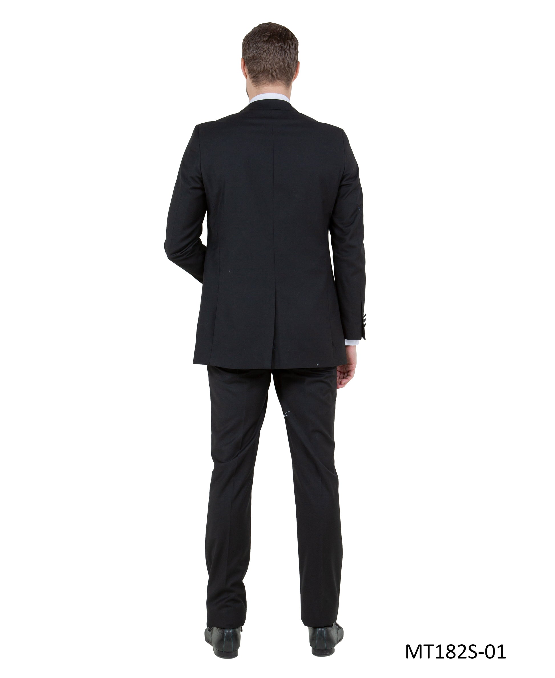 Black on Black Satin Peak Lapel Slim Fit 2 Piece Bryan Michaels Men's Tuxedo