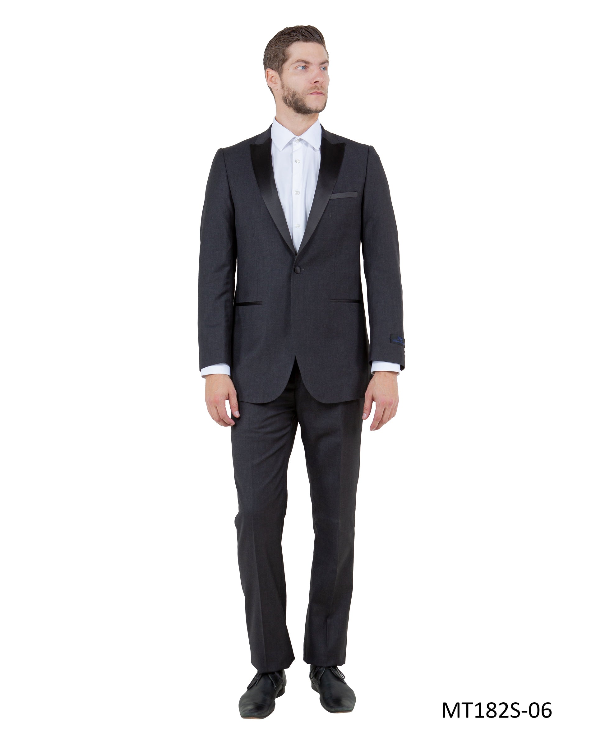 Charcoal on Black Satin Peak Lapel Slim Fit 2 Piece Bryan Michaels Men's Tuxedo