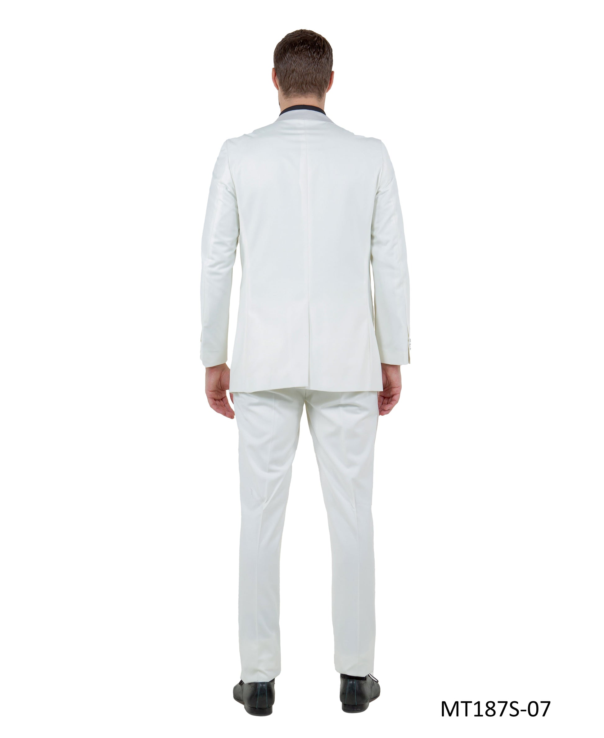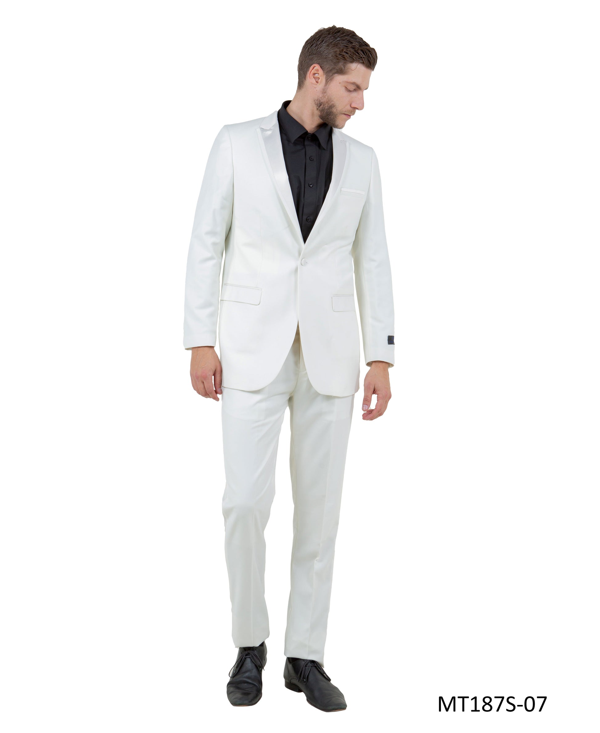 Offwhite on Offwhite Satin Peak Lapel With Fabric Trim Slim Fit 2 Piece Bryan Michaels Men's Tuxedo