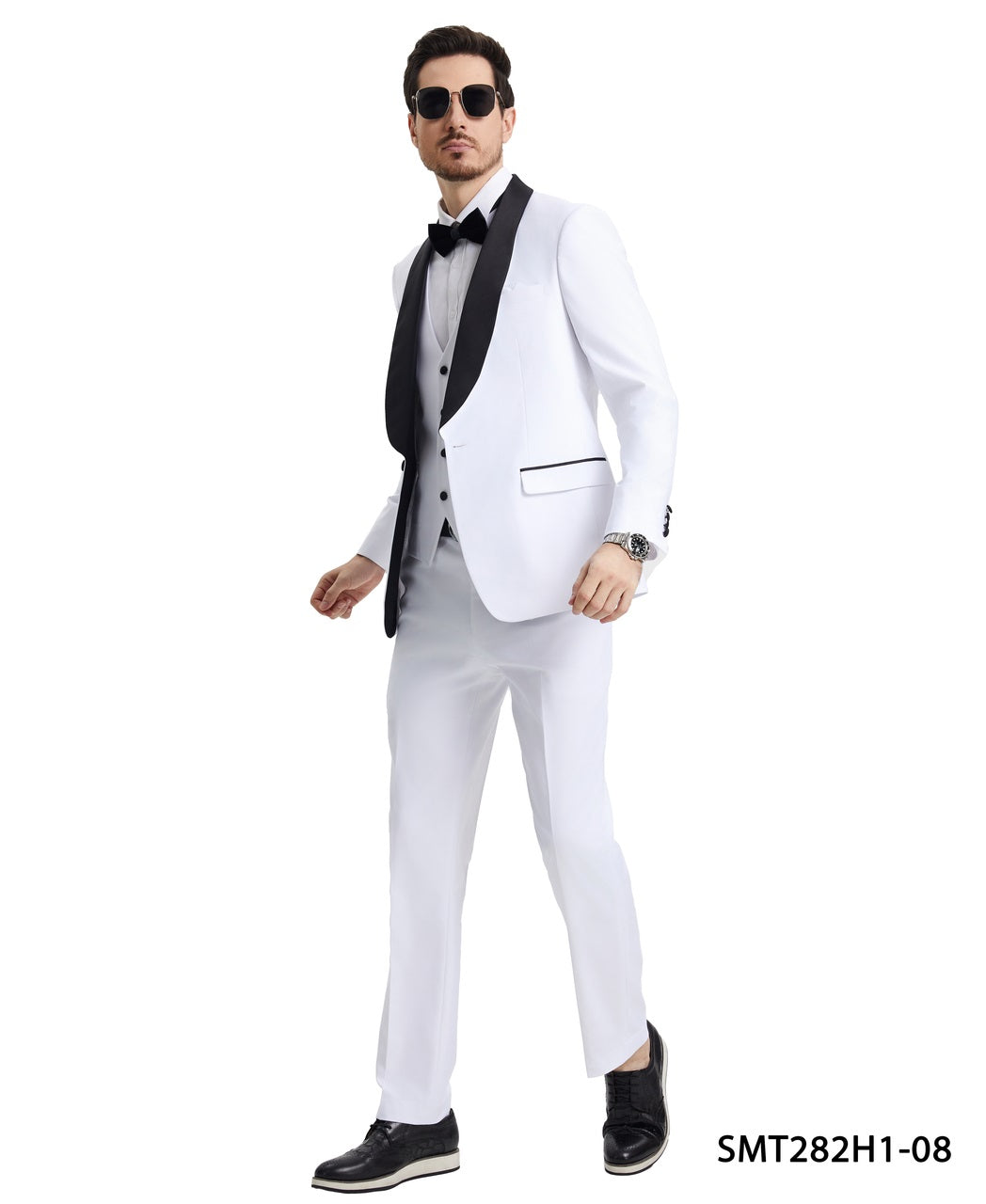 White/Black Satin Shawl Lapel 3 Piece Stacy Adams Men's Hybrid Tuxedo