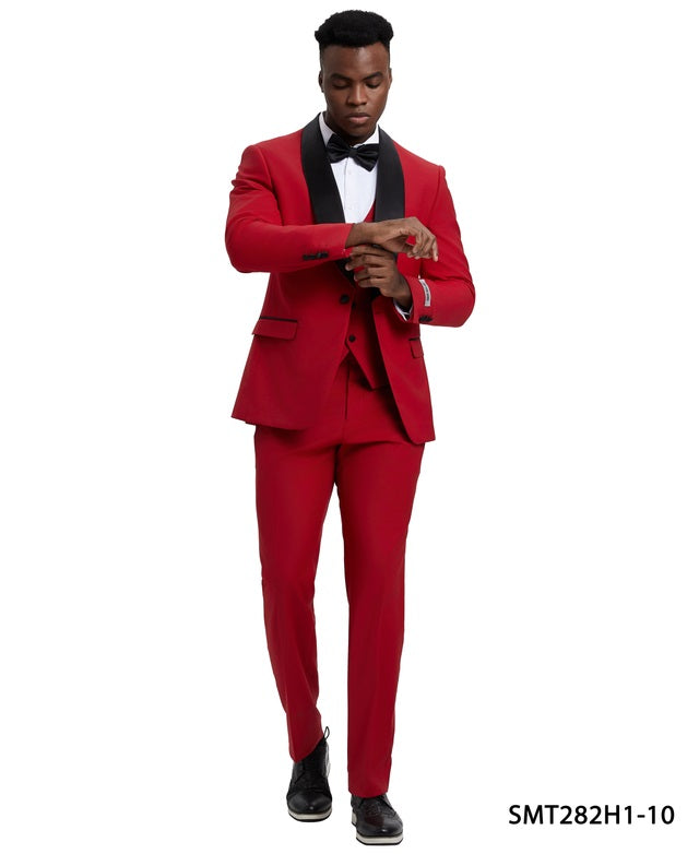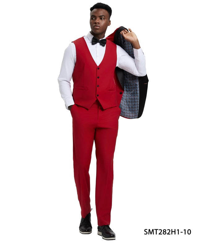 Red/Black Satin Shawl Lapel 3 Piece Stacy Adams Men's Hybrid Tuxedo